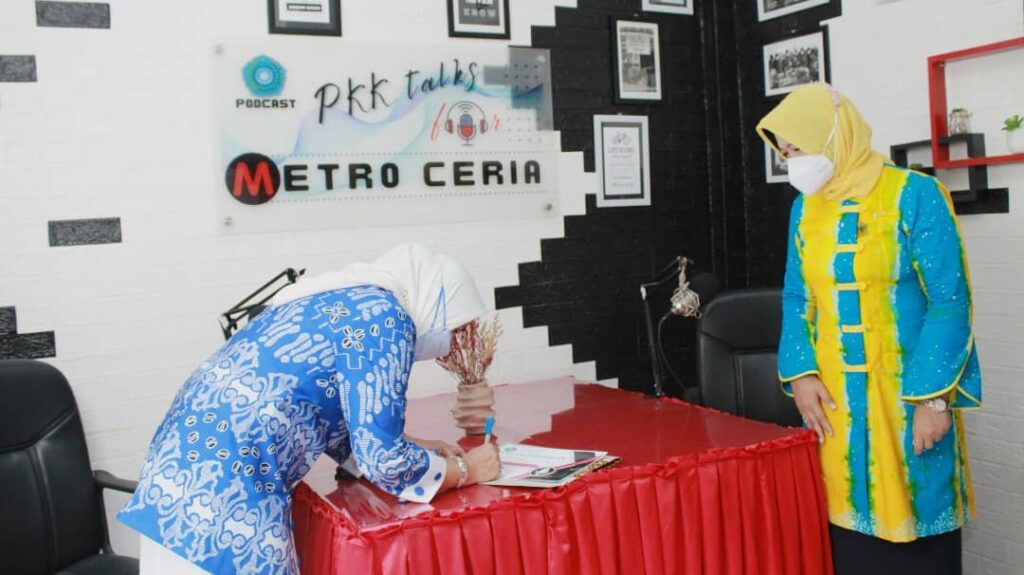 Ketua TP.PKK Provinsi Lampung Ny. Riana Sari Arinal dalam rangka kunjungan kerja ke Kota Metro juga meresmikan podcast PKK Kota Metro, dilanjutkan menjadi narasumber dan berdialog bersama Ketua TP PKK Kota Metro dalam tayangan perdana podcast. Podcast yang berkonsep “PKK talks for Metro Ceria” merupakan salah satu upaya sekretariat PKK Kota Metro dalam memanfaatkan perkembangan teknologi berbasis internet.