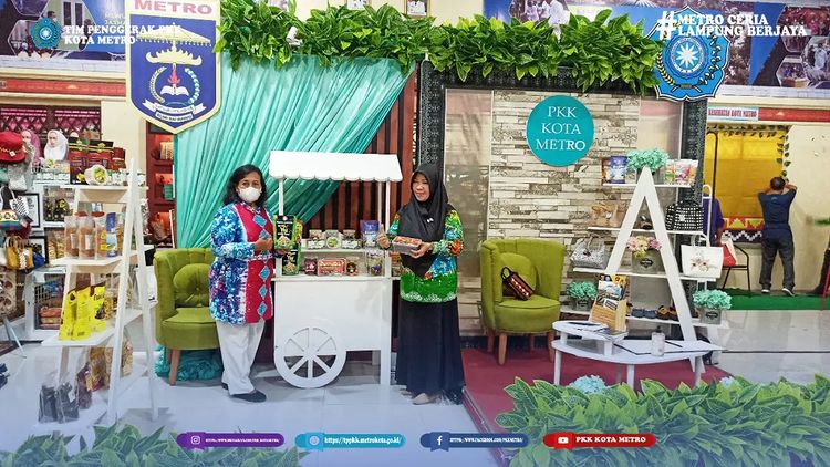 Ketua Tim Penggerak PKK Kota Metro menghadiri acara penutupan Lampung Fair di PKOR, Way Halim, Bandar Lampung. Produk-produk unggulan UP2K PKK Kota Metro baik olahan makanan maupun kriya turut hadir di Anjungan Kota Metro.