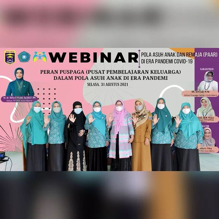 Dalam rangka Pembinaan Karakter Keluarga Melalui Pola Asuh Anak dan Remaja dengan penuh cinta dan kasih sayang dalam keluarga Pokja 1 TP PKK Kota Metro menyelenggarakan Webinar Pola Asuh Anak dan Remaja Era Digital. Webinar yang dilakukan dengan kolaborasi Dinas PPPAPPKB dan PUSPAGA Kota Metro mengusung tema “Peran Puspaga (Pusat Pembelajaran Keluarga) dalam pola asuh anak di Era Pandemi” dan dilakukan secara virtual dari Aula Sekretariat PKK Kota Metro.