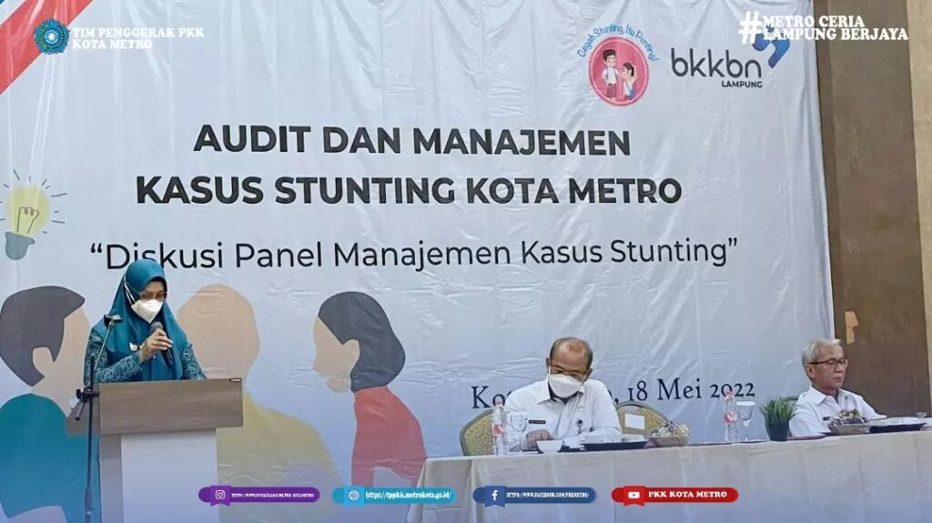 Ketua Tim Penggerak PKK Kota Metro berkesempatan mengisi materi pada kegiatan Diskusi Panel Manajemen Kasus Stunting.