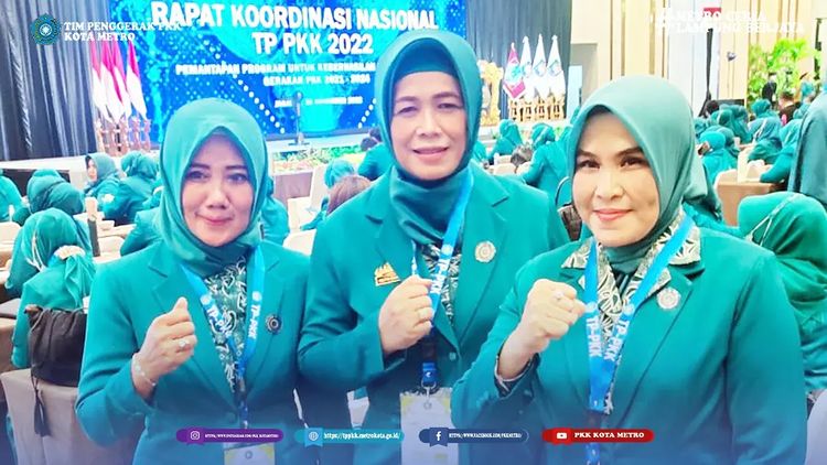 Ketua Tim Penggerak PKK Kota Metro dan Sekretaris 3, menghadiri Rapat Koordinasi PKK Tingkat Nasional Tahun 2022. Kegiatan ini dilaksanakan selama 2 (dua) hari, pada tanggal 28-29 November 2022, dengan peserta yaitu Pengurus TP PKK Pusat, Pengurus TP PKK Provinsi serta Ketua TP PKK Provinsi dan Kabupaten/Kota se-Indonesia. Rakornas PKK Tahun 2022 dibuka oleh Pelindung PKK Ibu Iriana Joko