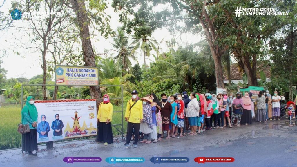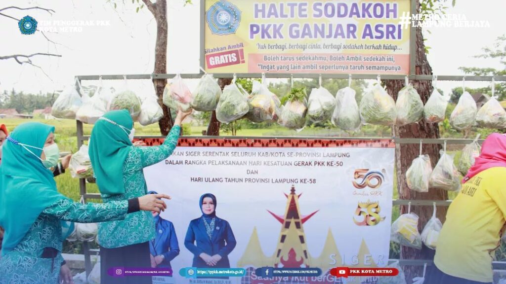 Pagi ini diantara rinai rintik hujan, Ketua Tim Penggerak PKK Kota Metro Ny. dr. Silfia N Wahdi, Sp.KKLP., M.M. bersama jajaran pengurus TP PKK Kota Metro, Kecamatan dan Kelurahan melaksanakan kegiatan SIGER (Saatnya Ikut berGERak untuk masyarakat yang membutuhkan) di beberapa halte sedekah dengan membagikan bahan makanan mentah berupa sayur dna lauk pauk. Kegiatan ini dilaksanakan Dalam rangka memperingati Hari Kesatuan Gerak PKK Ke-50 tahun 2022.