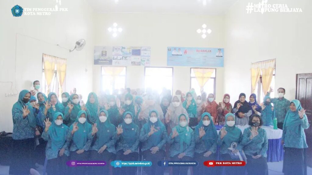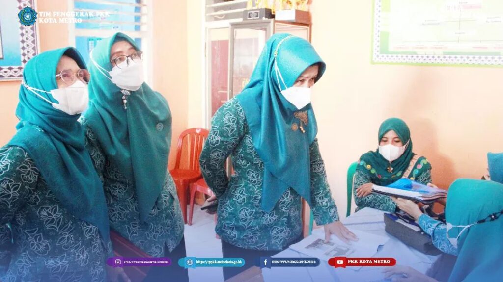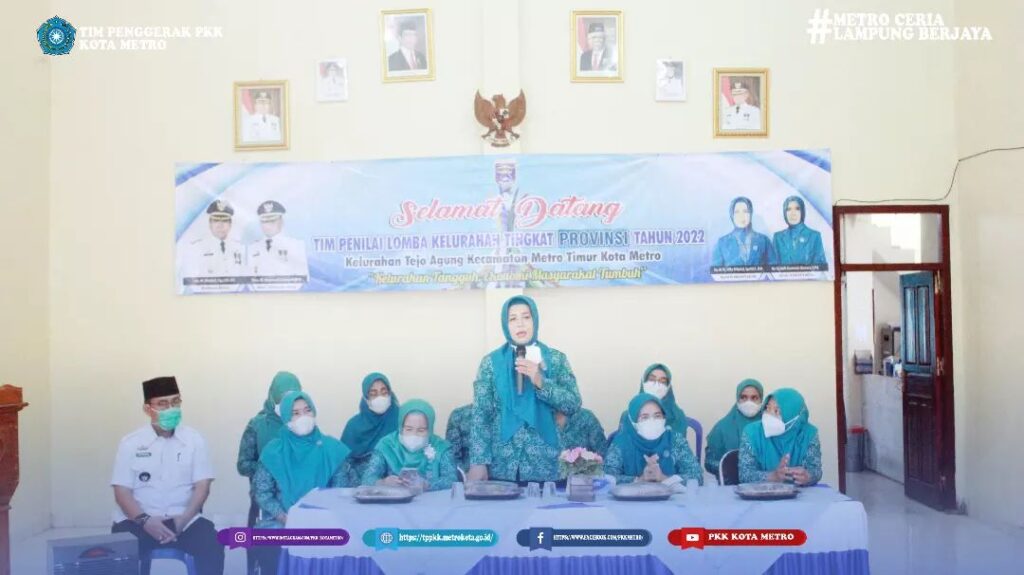 Ketua Tim Penggerak PKK Kota Metro Ny. Dr. Silfia Naharani Wahdi, Sp. KKlp, MM didampingi oleh Ketua bidang 1 Ny. Asih Kusminah Qomaru, S.Pd beserta sekretaris dan pengurus Pokja Pokja 1 sampai dengan pokja 4 melakukan pembinaan administrasi dan pelaksanaan 10 program pokok PKK di Kelurahan Tejoagung Kecamatan Metro Timur.