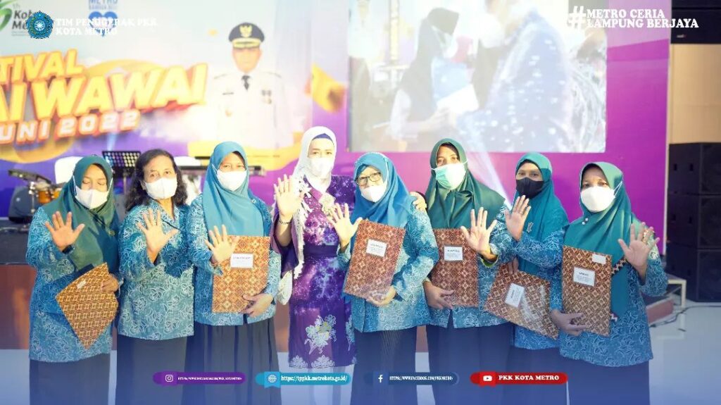 Ketua Tim Penggerak PKK Kota Metro Ny. dr. Silfia Wahdi beserta jajaran menghadiri dan ikut memeriahkan acara penutupan Festival Bumi Sai Wawai dalam rangka hari jadi Kota Metro ke-85.