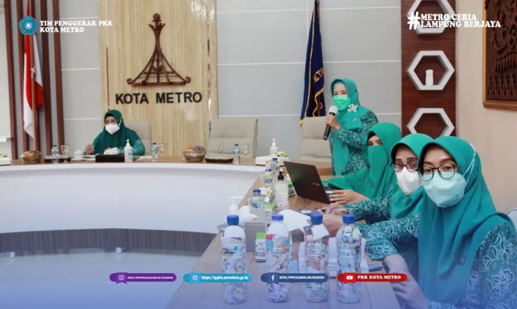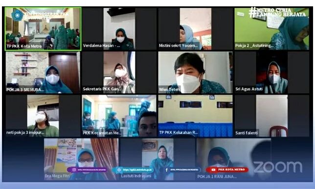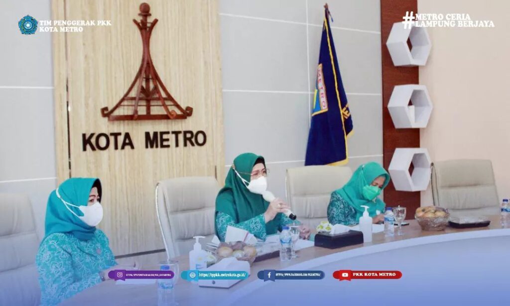 Ketua Tim Penggerak PKK Kota Metro Ny. dr. Silfia Wahdi Naharani, Sp. KKLP, MM memimpin Rapat Koordinasi Bulan Februari yang dilakukan secara hybrid dari Guest House Rumah Dinas Walikota Metro. Turut hadir seluruh pengurus PKK se-Kota Metro baik offline maupun online.