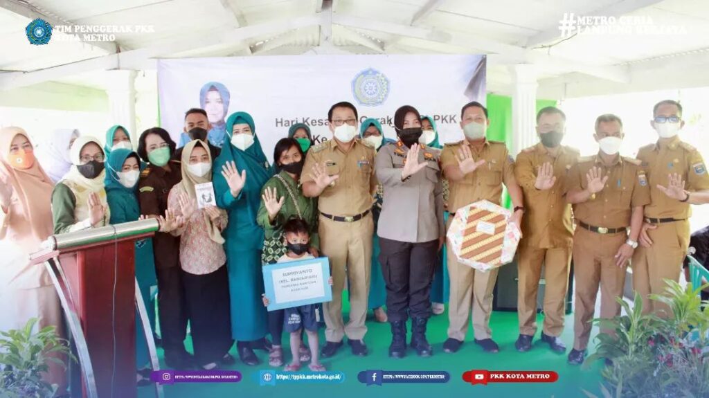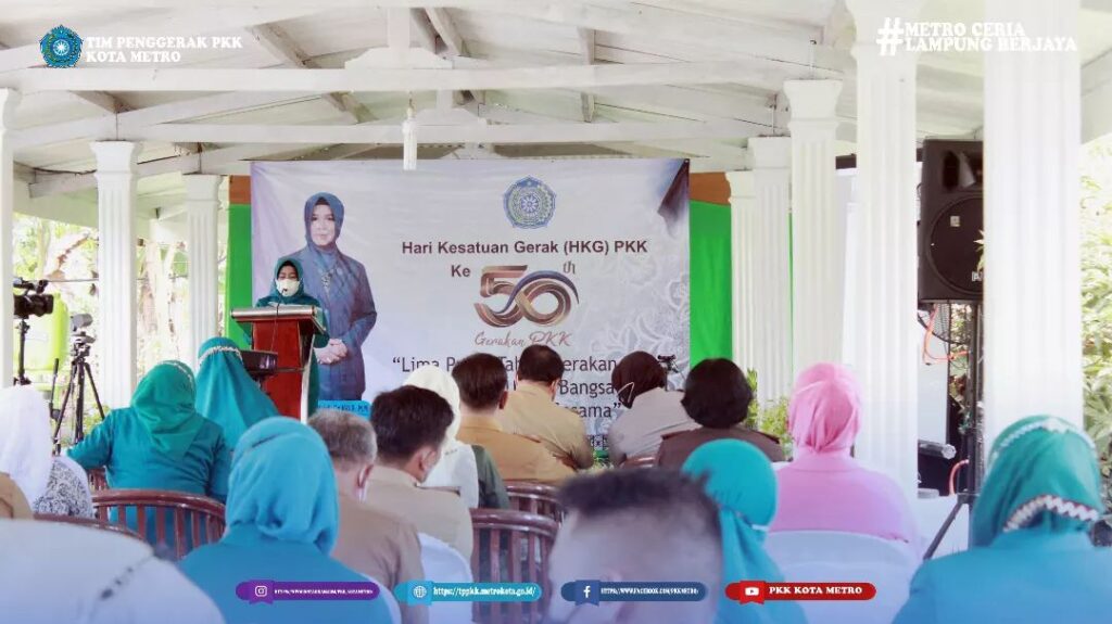 Tim Penggerak PKK Kota Metro memperingati Hari Kesatuan Gerak PKK (HKG-PKK) ke-50 Tingkat Kota Metro Tahun 2022. Kegiatan diselenggarakan secara hybrid dari Taman Metro Indonesia Indah (TMII) Kota Metro. Secara offline dihadiri oleh Walikota Metro, Forkopimda Kota Metro, Organisasi Wanita di Kota Metro dan Kepala-kepala OPD di Kota Metro. Secara online dihadiri oleh Ketua Pokja 3 TP PKK Provinsi Lampung, Pengurus PKK Kota Metro, Pokja Paud Kota Metro, YJI Kota Metro, YKI Kota Metro, ketua PKK Kecamatan dan PKK Kelurahan. Pada kesempatan ini PKK Kota Metro menandatangani MOU Tabungan Hati Dengan Baznas Kota Metro, Dan MOU Pra catin Dengan Kemenag Kota Metro, Dinas Kesehatan Kota Metro, Dinas PPPA & KB Kota Metro Dan Ikatan Bidan Indonesia Kota Metro. Dan TP PKK Kota Metro bersama PT. nestle memberikan simbolis bantuan susu kepada batita yg hadir sekaligus wisuda batita yg imunisasi lengkap dan balita yg rajin ke posyandu.