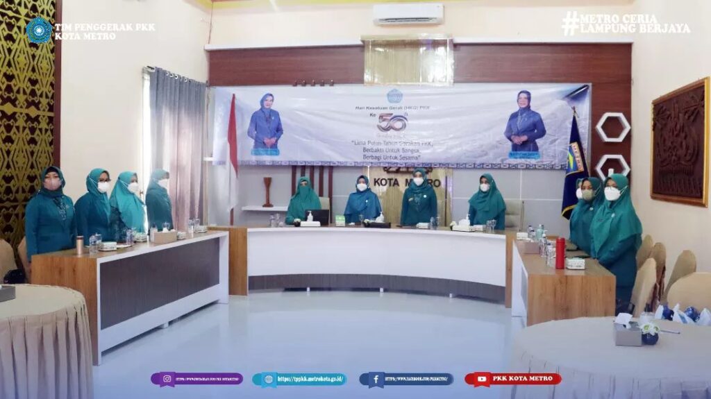 Tim penggerak PKK Kota Metro menghadiri kegiatan peringatan Hari Kesatuan Gerak (HKG) PKK ke-50 tingkat Provinsi Lampung Tahun 2022 secara virtual dari Guest House Rumah Dinas Walikota Metro.