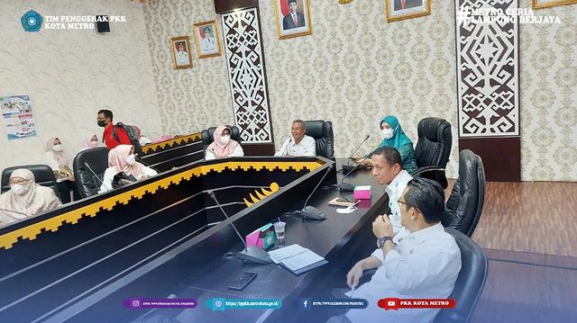 Tim Penggerak PKK Kota Metro diwakili Sekretaris 3 dan Wakil Ketua Pokja 4 menghadiri rapat persiapan penerimaan Kunjungan Ketua Tim Penggerak PKK Provinsi Lampung. Kunjungan tersebut dilaksanakan dalam rangka Pembinaan sekaligus Monitoring dan Evaluasi Program Desa/Kelurahan Model Konvergensi Penanganan dan Pencegahan Stunting juga Desa/Kelurahan Ramah Perempuan dan Perlindungan Anak. Rapat dilaksanakan di OR Walikota Metro dipimpin Kepala Dinas PPPAPPKB Kota Metro dan dihadiri juga oleh perwakilan OPD terkait.